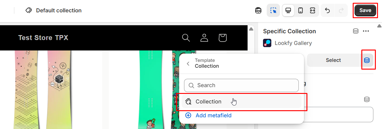 Click + Add section, and either select a new section from the list or use the Search bar to search for a Specific Collection ( Lookfy Gallery )