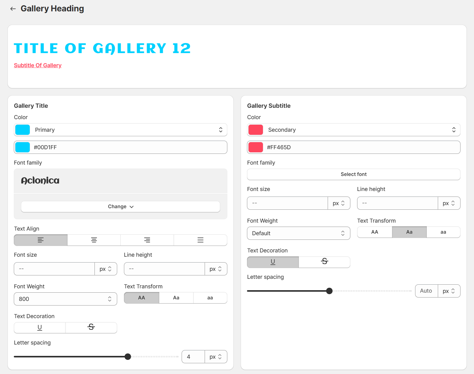 To make your Lookfy gallery more concordant with the style of your theme, you may want to customize the gallery’s title, subtitle.