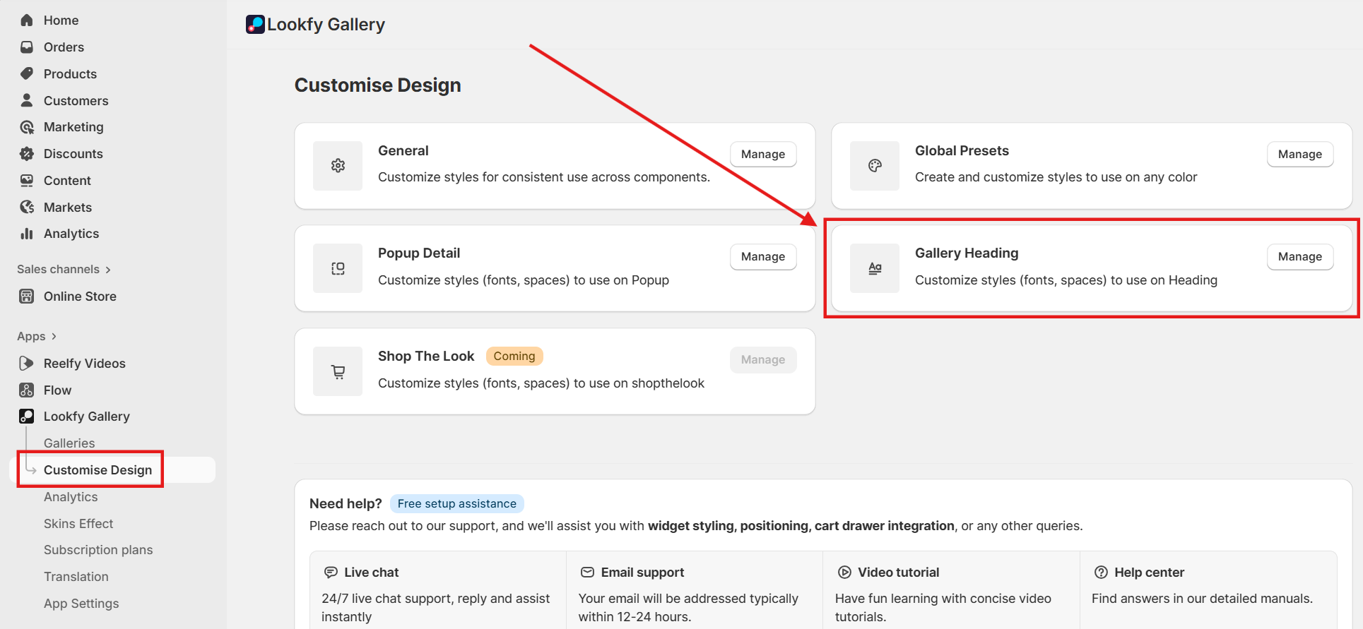 Please go to Customise Design → Gallery Heading