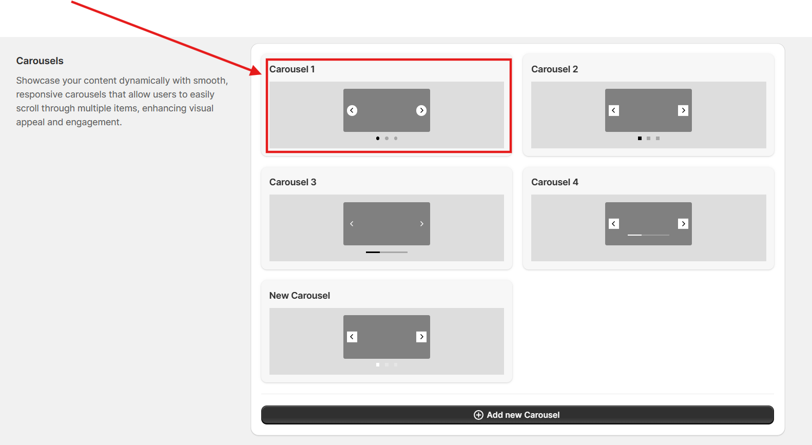 Click on the carousel that you applied to the gallery, here it is Carousel 1